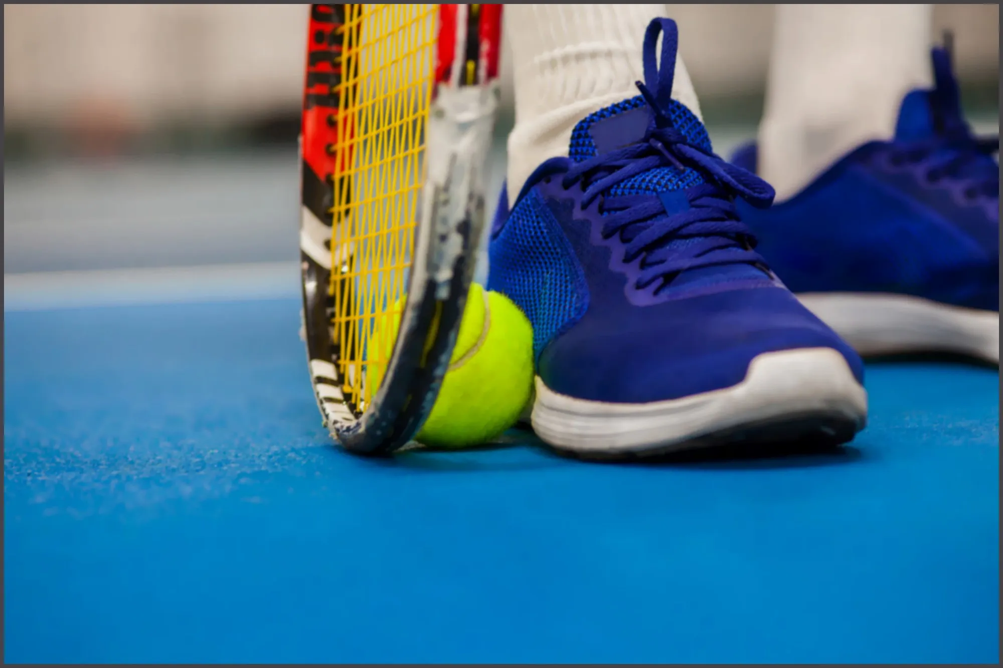 O tênis de um jogador de tênis está sujeito a um desgaste significativo devido aos movimentos rápidos, mudanças de direção e deslizes constantes durante as partidas.