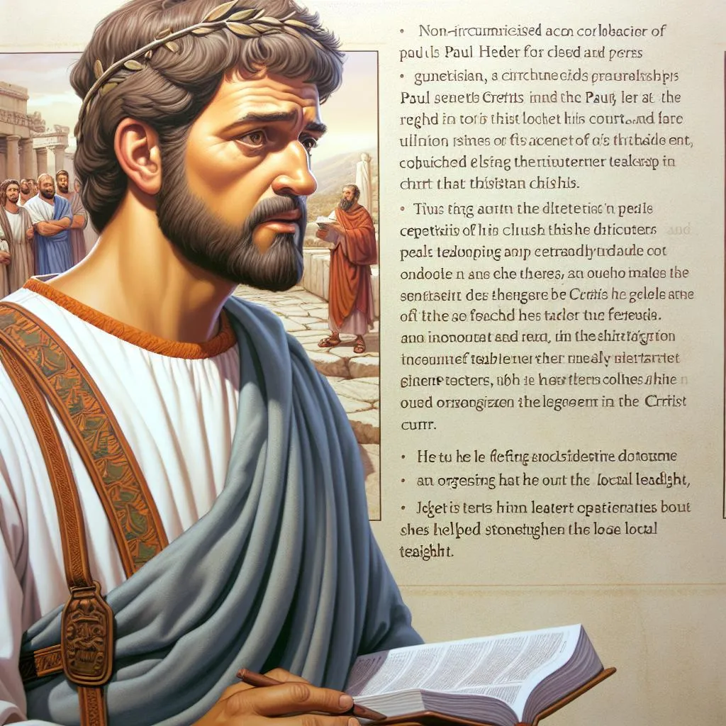 Ele foi um colaborador fiel de Paulo, enfrentou desafios significativos e desempenhou um papel vital na formação da igreja em Creta.